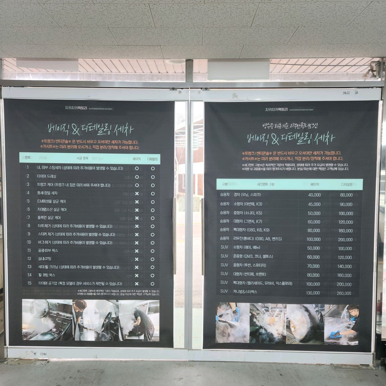 | 베이직 세차 | 외부 스팀세차 | 40,000 ~ 260,000 |