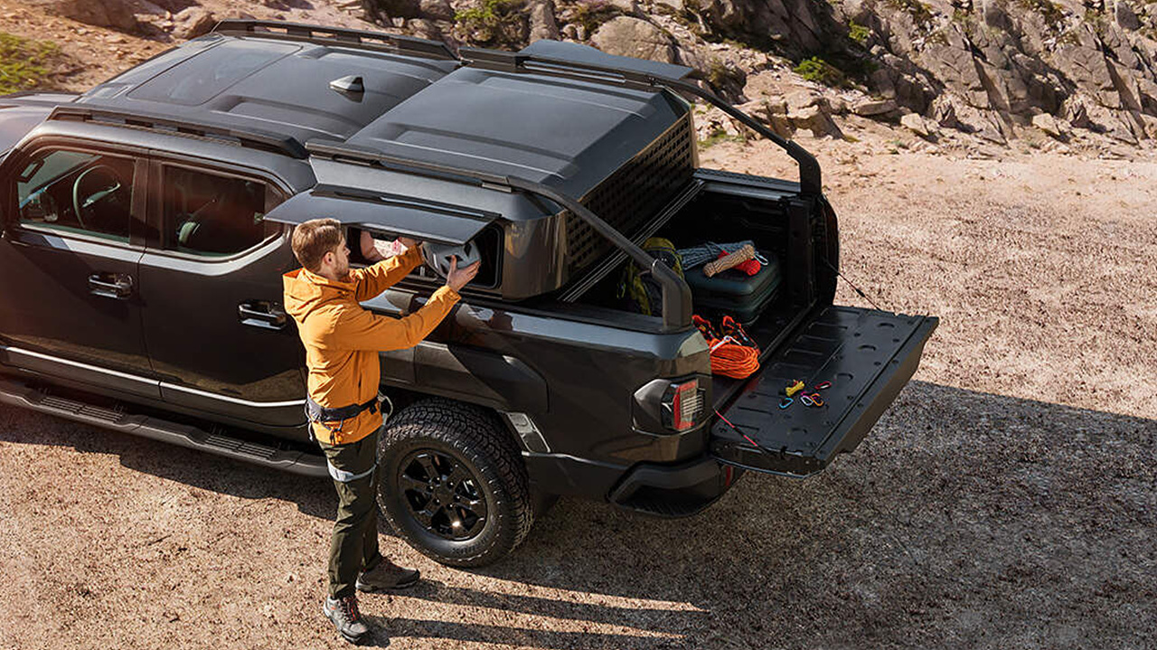- 적재함: 리프트 업 기능과 루프탑 텐트, 캠핑 키트를 연동한 구조