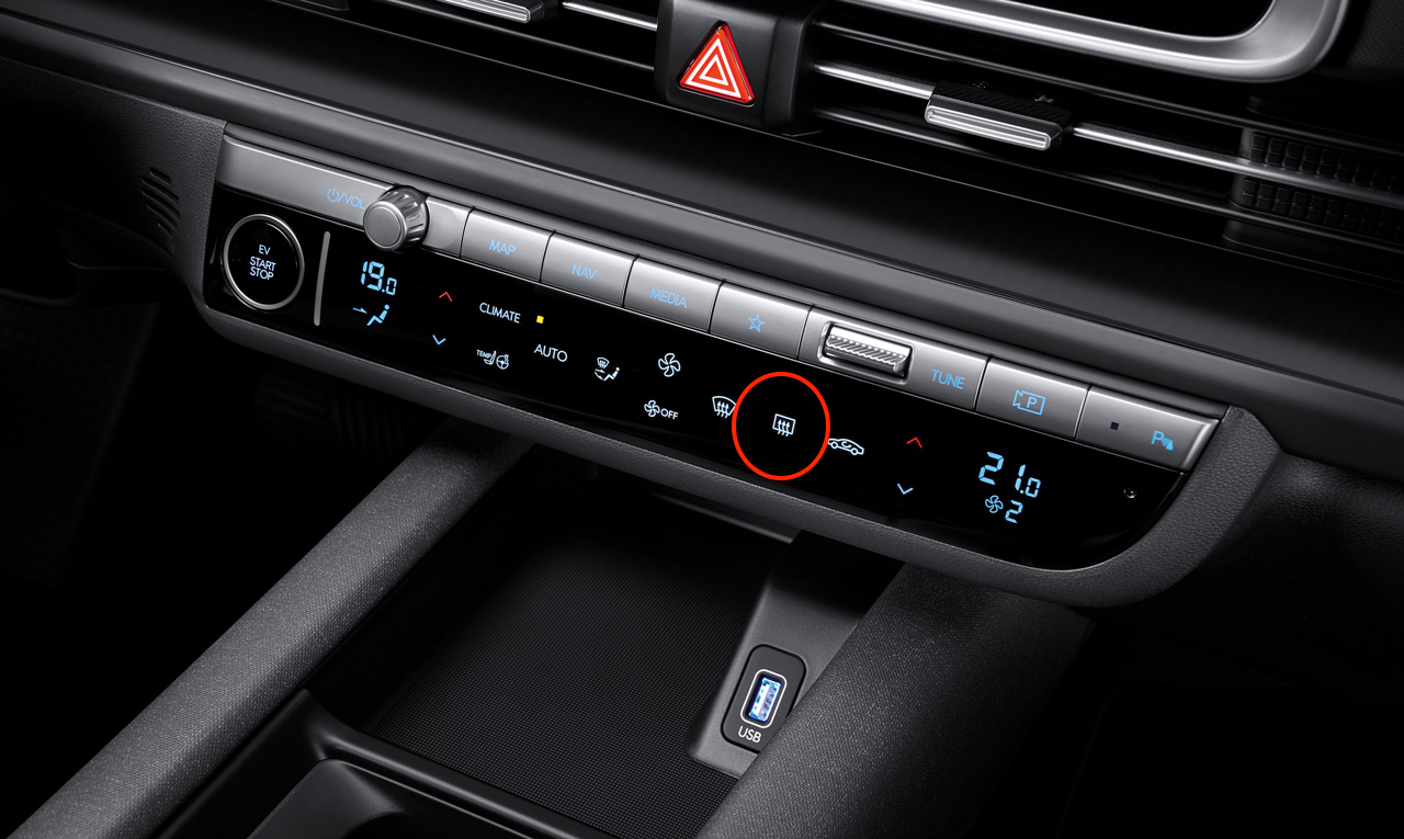 - 디 엣지, 그랜저, 쏘나타, EV 시리즈 등 최근 모델은 기본 적용되어 있으며, 외기 온도에 따라 자동 작동하는 경우도 있습니다.