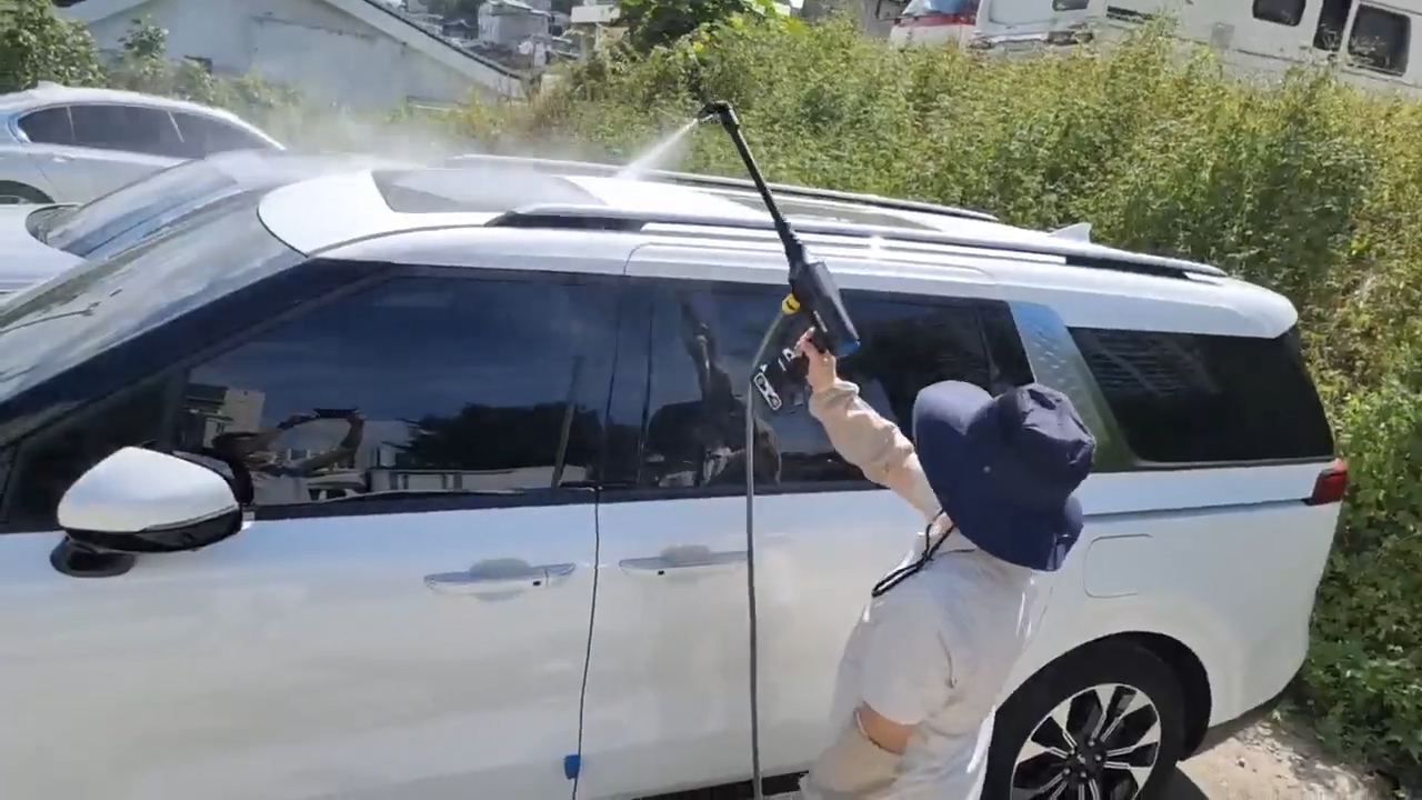 송화가루 세차에 특히 유용했던 제품은 콜튼 무선 고압세척기입니다. 무선 방식이라 전기선 연결 없이도 간편하게 사용할 수 있고, 수압도 일반 세차장 못지않게 강력했습니다. 저처럼 야외 주차장 사용자라면 특히 추천드립니다. 물탱크만 연결하면 어디서든 세차가 가능합니다.
