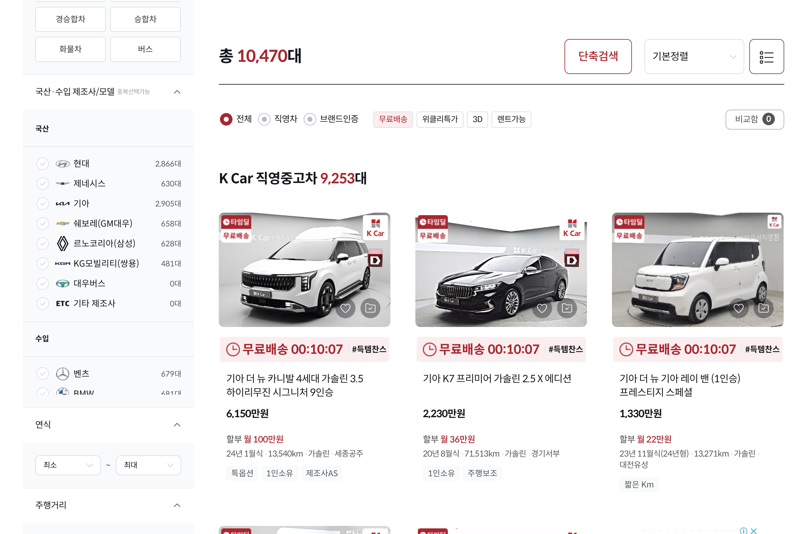 | 항목 | 엔카(Encar) | K Car | KB차차차 |