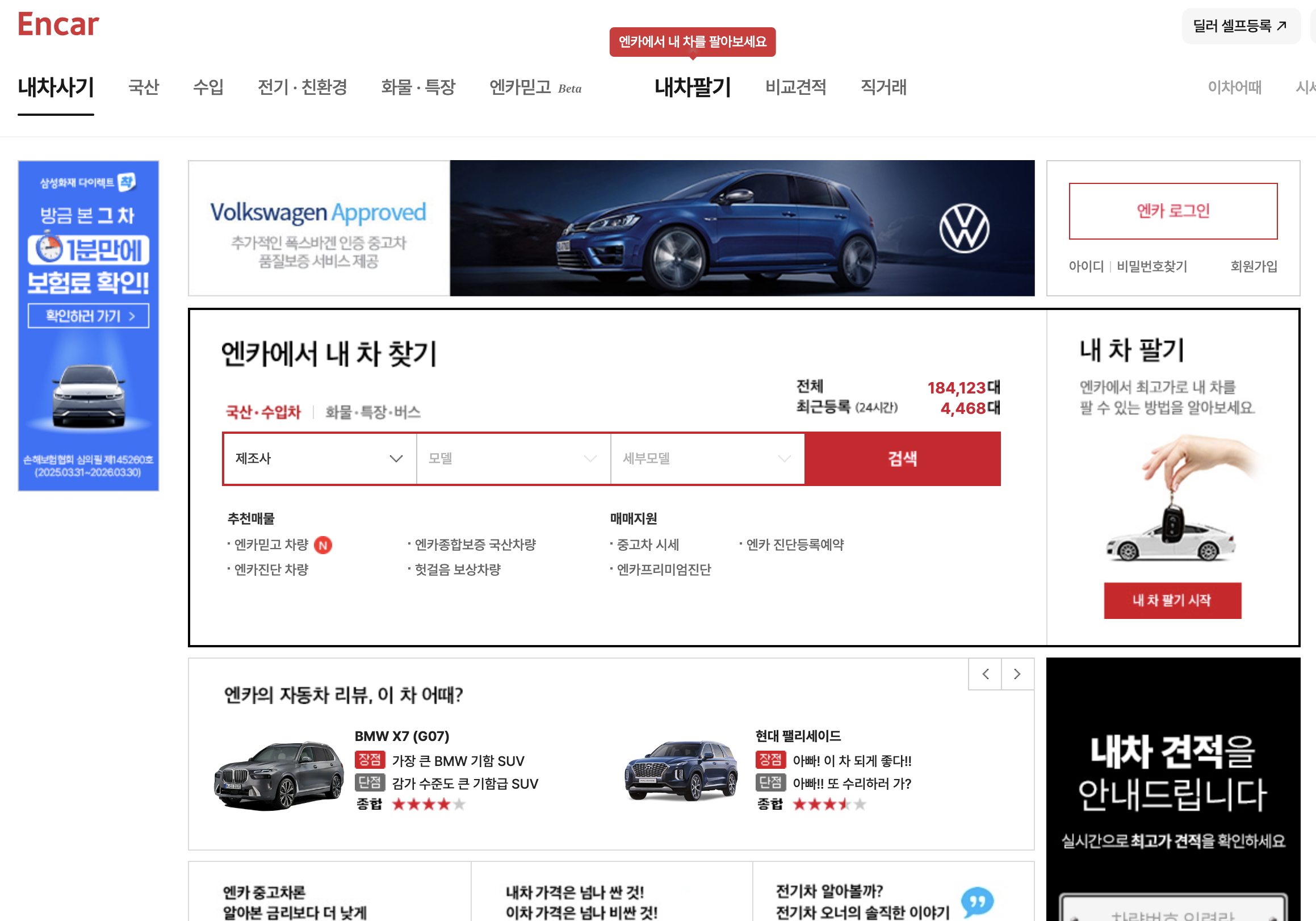 | 장점 | - 국내 최대 매물, 희귀차 보유 - 엔카진단/보증, 헛걸음 보상 - 개인직거래로 중간마진 최소화 |