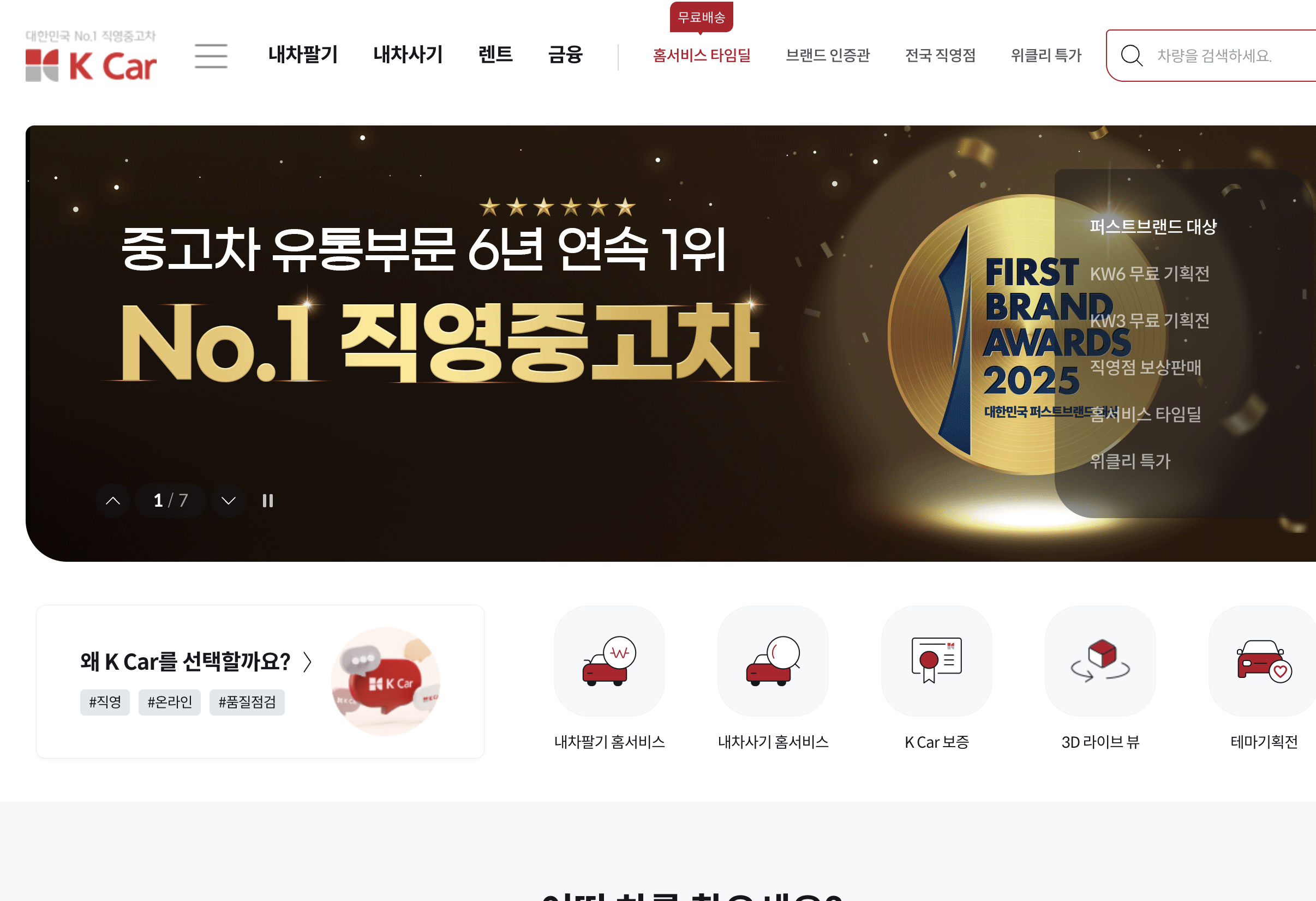 - 100% 직영, 허위매물 없음 - 7일 환불, 홈서비스 - 전 차량 통합 품질 관리 |