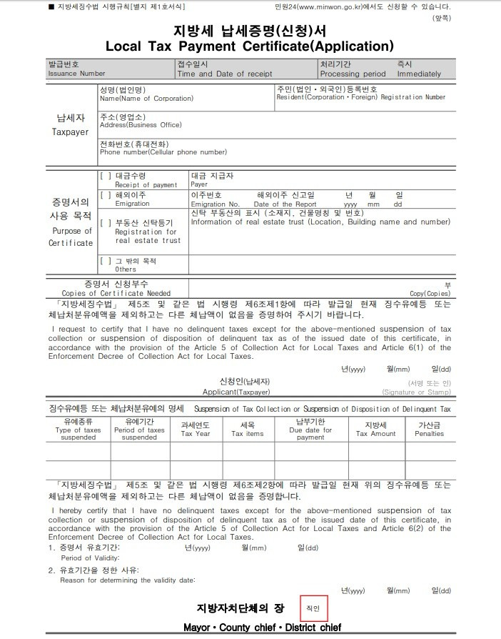 ※ 인감증명서가 필요한 경우, 인감도장이 찍힌 위임장과 인감증명서를 함께 제출해야 효력이 인정됩니다.