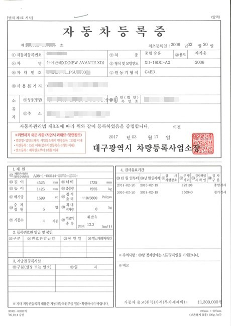 - 명의이전 접수 (시/군/구 차량등록사업소 또는 대행업체)