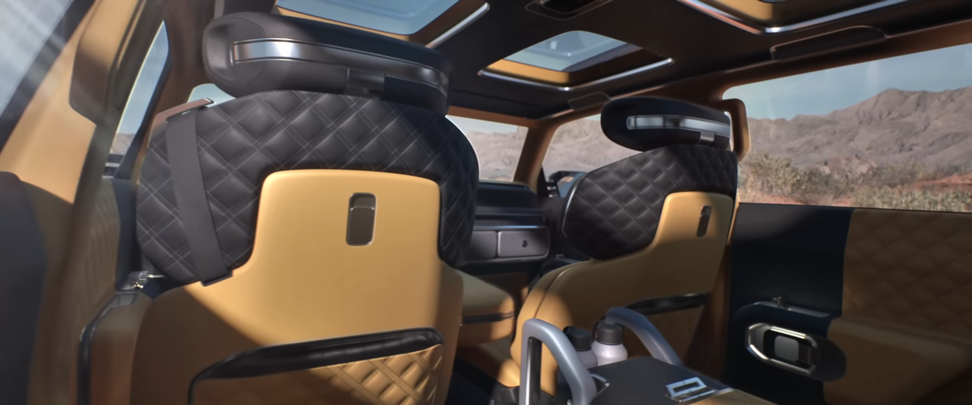 내부 소재는 중립적인 톤의 프리미엄 가죽과 패브릭이 사용되었으며, 오프로드 환경에서도 고급감을 유지할 수 있도록 설계됐습니다. 전반적으로 실내는 디지털과 아날로그의 균형, 실용성과 감성적 경험을 모두 만족시키는 구성입니다.