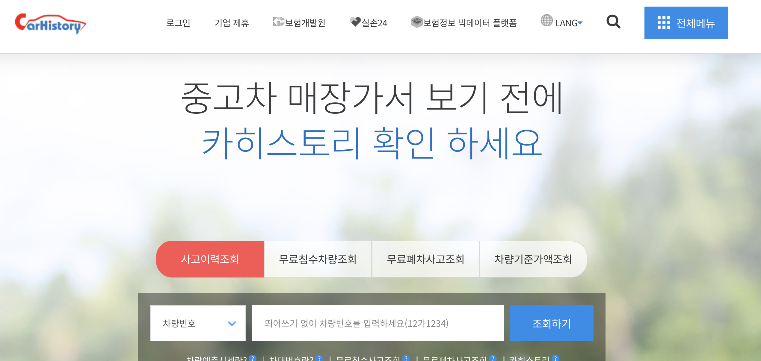 - 성능점검기록부, 보험이력 확인