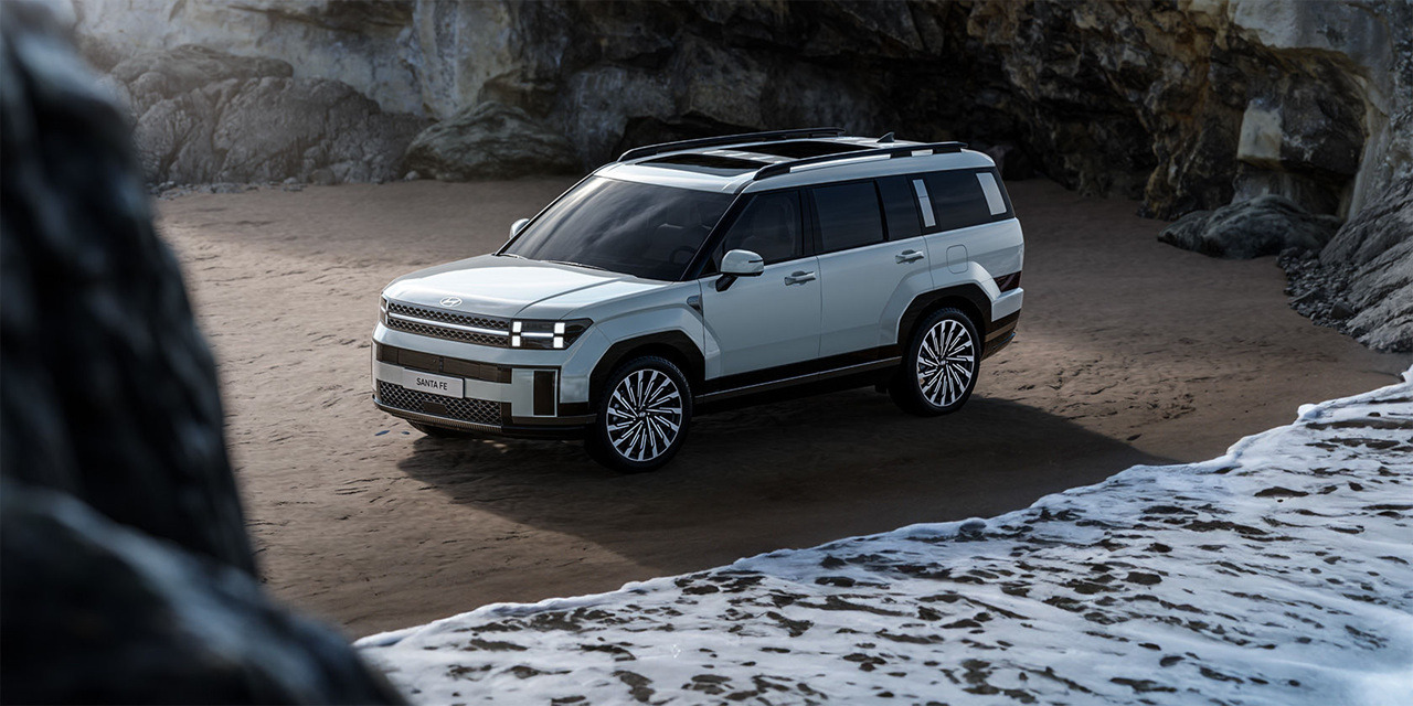 신형 싼타페 하이브리드는 ‘H 시그니처 라이트’를 중심으로 박스형 디자인을 전면에 내세우며 강렬한 인상을 줍니다. 전면부와 후면부 모두 각이 살아 있는 형태로, 전통적인 SUV의 느낌을 현대적으로 재해석했습니다.
