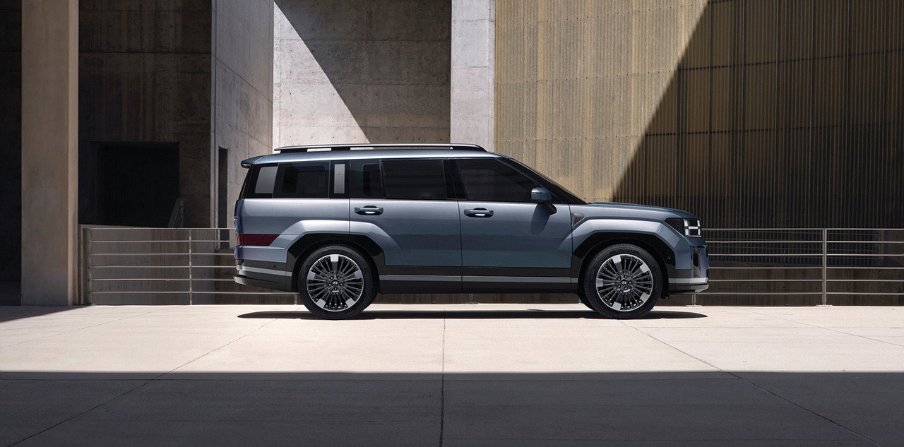 전면에는 대형 H자형 주간주행등과 넓은 그릴이 자리잡고 있습니다. 측면은 각진 캐릭터 라인과 플랫한 벨트라인이 안정감을 줍니다. 후면부는 세로형 리어램프와 간결한 후드 구조가 특징입니다. 실물은 사진보다 훨씬 중후한 느낌을 줍니다.