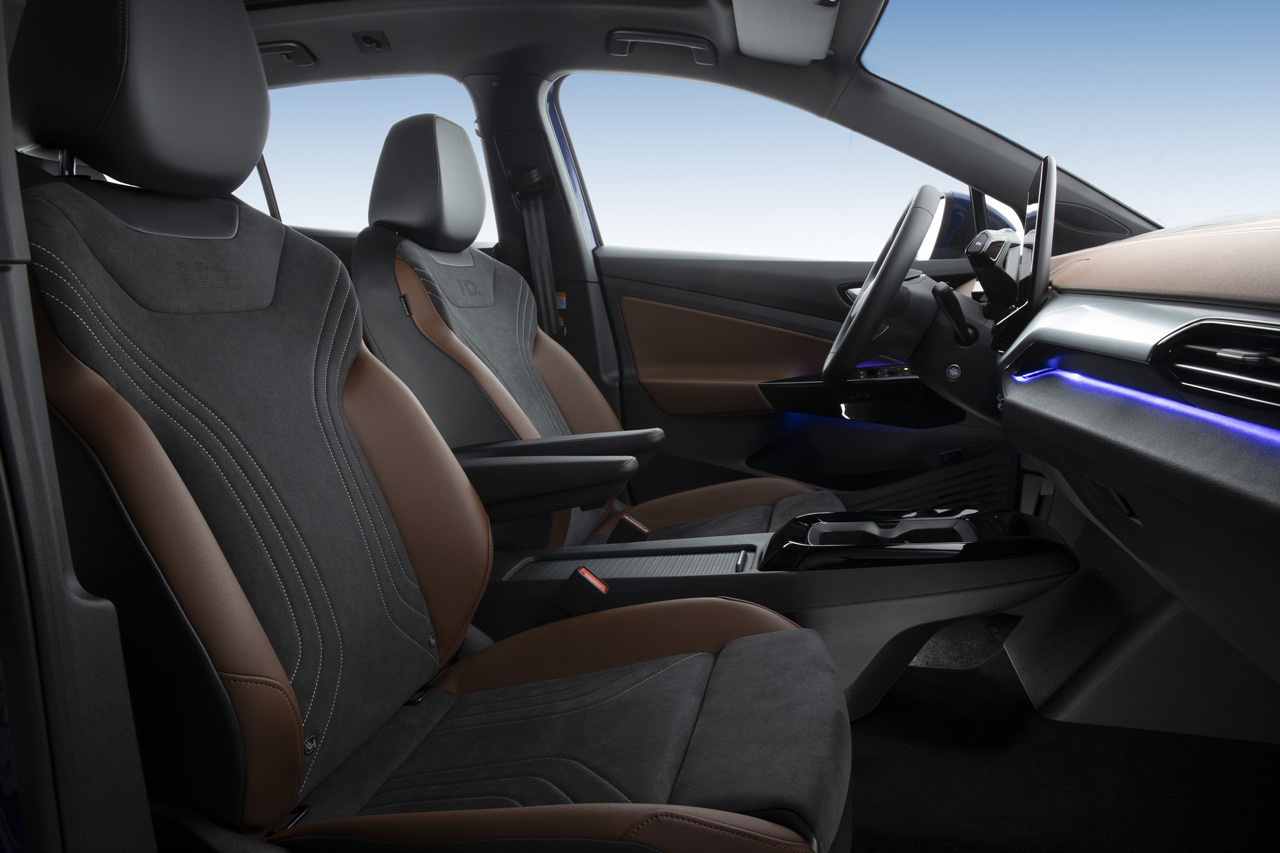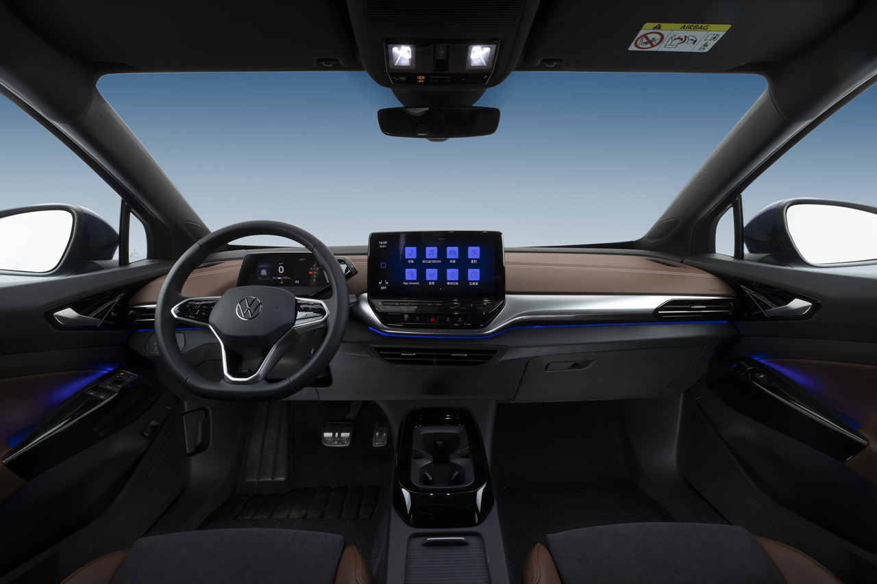 ID.4의 외관은 공기역학적 설계가 돋보입니다. 전면에는 슬림한 LED 헤드램프와 대형 폭스바겐 로고, 후면에는 수평형 라이트 바와 3D LED 리어램프가 적용되어 세련되면서도 미래지향적인 느낌을 줍니다. 공기저항계수는 Cd 0.28로 동급 전기 SUV 중 우수한 수치를 기록합니다.