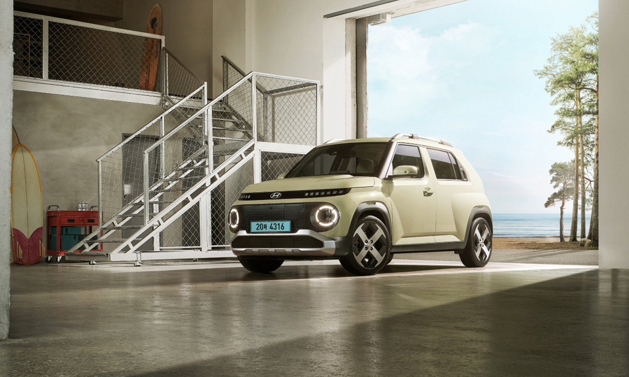 전기차 전용 모델답게 전면부에 그릴이 사라지고, 더욱 미래지향적인 라이트 디자인이 적용되었습니다. 전체적인 실루엣은 기존 캐스퍼와 비슷하지만, 세부적인 디테일은 확연히 다릅니다.