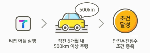 ✔️ T맵 안전운전 점수 76점 이상 (보험사별로 70점 이상, 일부는 1000km 이상도 인정)