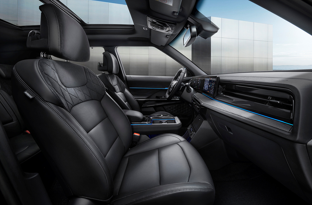 액티언 하이브리드는 S8 단일 트림으로만 출시되며, 20인치 다이아몬드 커팅 휠과 이중접합 차음 유리, 천연가죽 퀼팅 시트, 12.3인치 디지털 계기판 및 통합 디스플레이, 무선 폰 프로젝션 등이 기본으로 제공됩니다. 키 없는 스마트키, 파워 테일게이트, 스마트폰 무선 충전, 블랙 헤드라이닝 등 고급 편의 기능을 모든 차량에서 누릴 수 있어, 별도 옵션 없이도 충분한 만족감을 줍니다.