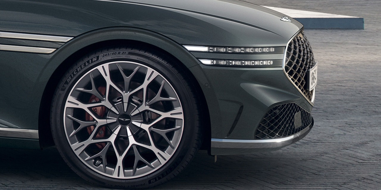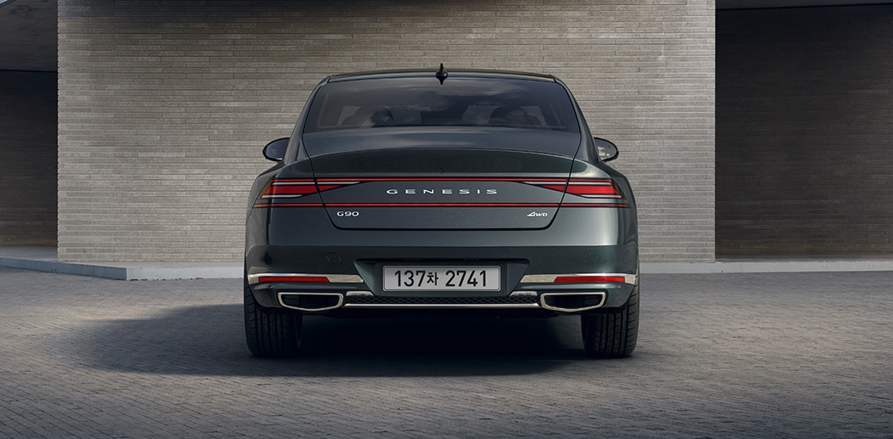 G90은 대형 세단답게 여유로운 차체 크기와 고출력 파워트레인을 갖추고 있습니다. 모든 트림은 3.5L V6 트윈터보 엔진을 기반으로 하며, 롱휠베이스 모델에는 e-슈퍼차저가 추가되어 더 강력한 출력을 자랑합니다.