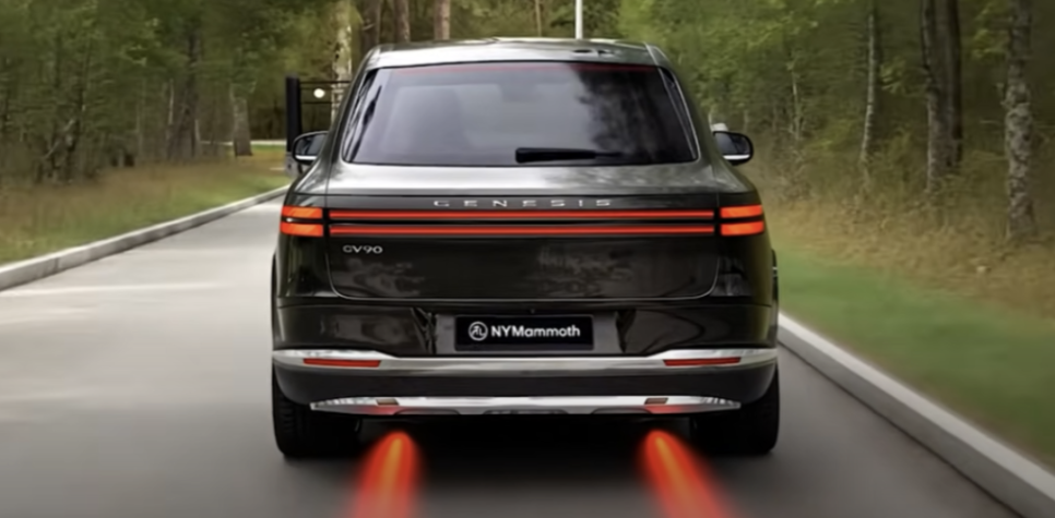 GV90은 전장 약 5,200mm, 휠베이스 3,400mm의 초대형 차체로, 벤틀리 벤테이가나 BMW X7보다 더 큰 비율을 자랑합니다. 제네시스 특유의 두 줄 쿼드 램프, 막힌 크레스트 그릴, 그리고 수평형 볼륨을 강조한 측면 디자인은 전기 SUV이자 고급차의 정체성을 동시에 드러냅니다. 후면부는 슬림한 리어램프와 고급스러운 디퓨저가 조화를 이루며, 고요하지만 강한 인상을 줍니다. 전체적으로는 롤스로이스 컬리넌과 유사한 위용을 느낄 수 있으며, 국산 SUV에서는 볼 수 없었던 새로운 실루엣입니다.