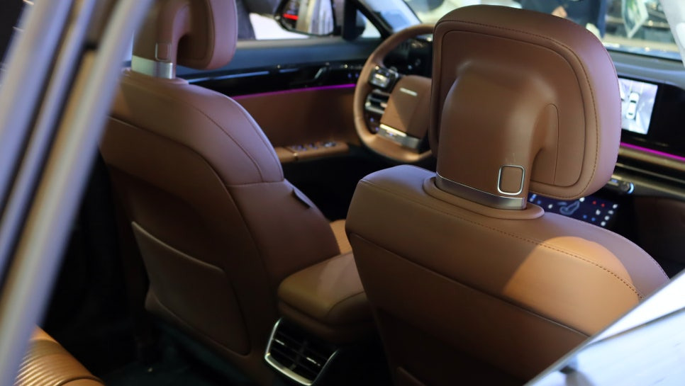 앞·뒤 순차 점등 방향지시등과 다이내믹 웰컴 라이트도 한층 세련된 디테일로 마무리되었으며, 야간에 차량 접근 시 점등되는 라이팅 연출은 운전자에게 심미적인 만족감을 더합니다. 이와 함께, 차체 곳곳의 크롬 라인 마감이나 글로시 블랙 포인트 요소는 고급 대형 세단의 품격을 유지하는 데 중요한 역할을 하고 있습니다.