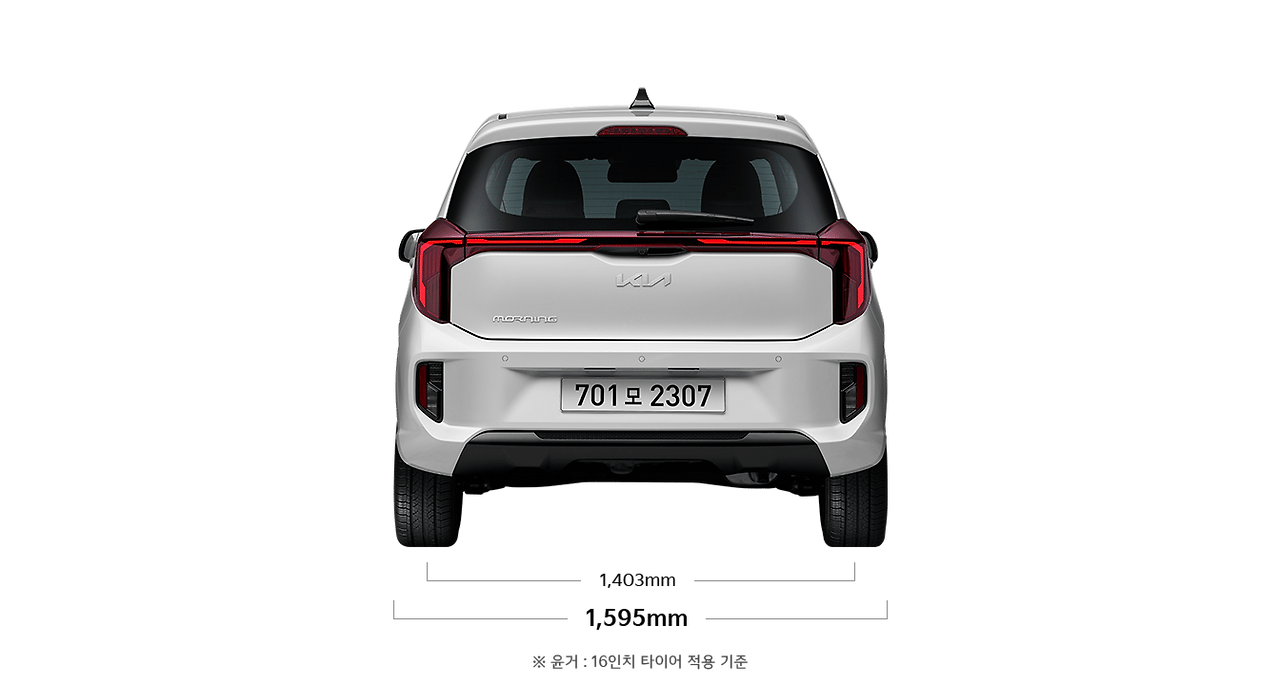 모닝은 작은 차체에도 불구하고 2,400mm의 휠베이스를 확보해 뒷좌석 탑승자 공간과 트렁크 적재 공간을 최대한 확보하였습니다. 도심 주행 중심의 구조답게 회전 반경이 작고, 전방 시야 확보가 뛰어나 초보 운전자나 1인 가구에게 특히 추천됩니다.