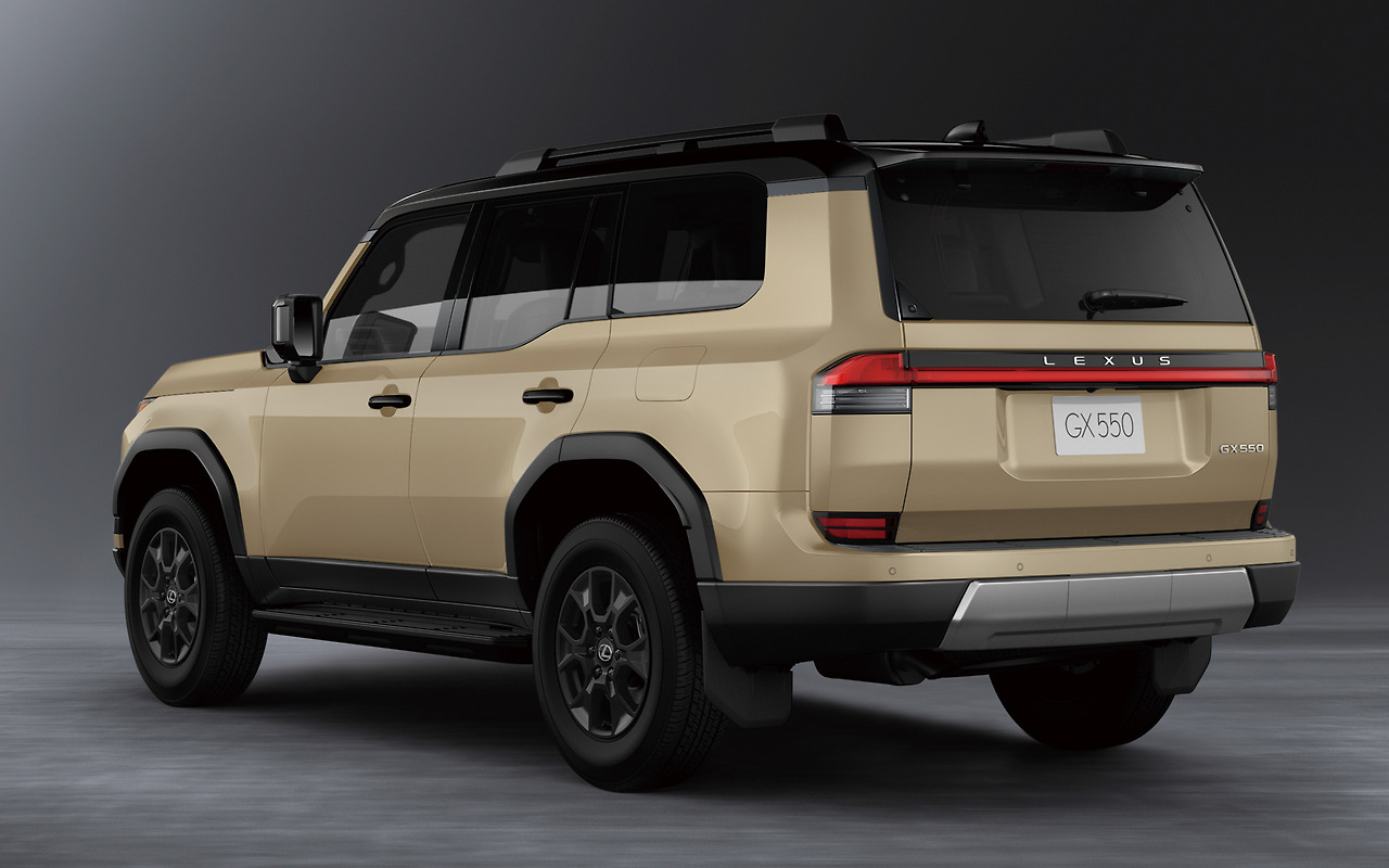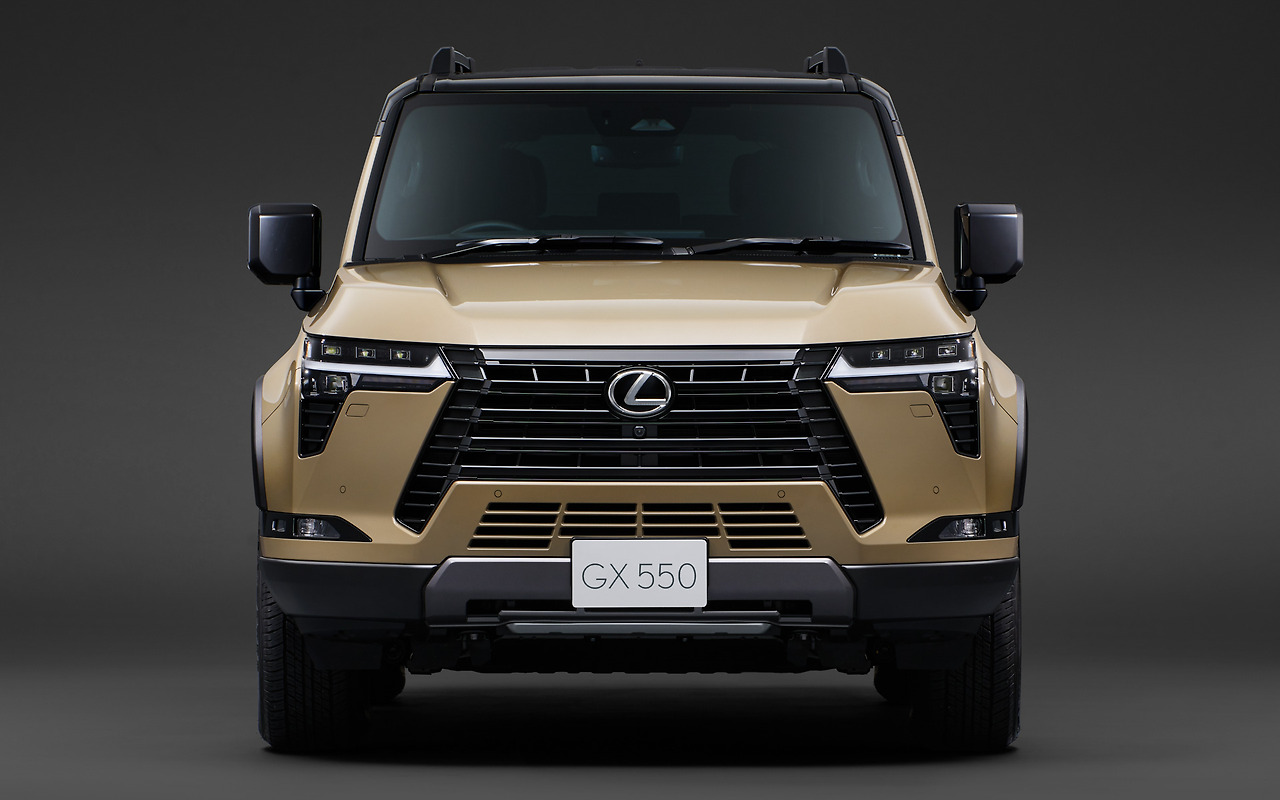 GX550은 각진 박스형 실루엣과 대형 그릴, 근육질 휀더라인 등 강인한 인상을 강조한 외관을 갖추고 있습니다.