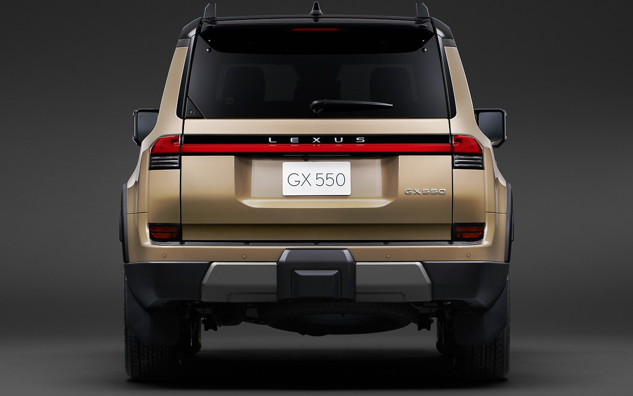 GX550은 각진 박스형 실루엣과 대형 그릴, 근육질 휀더라인 등 강인한 인상을 강조한 외관을 갖추고 있습니다.