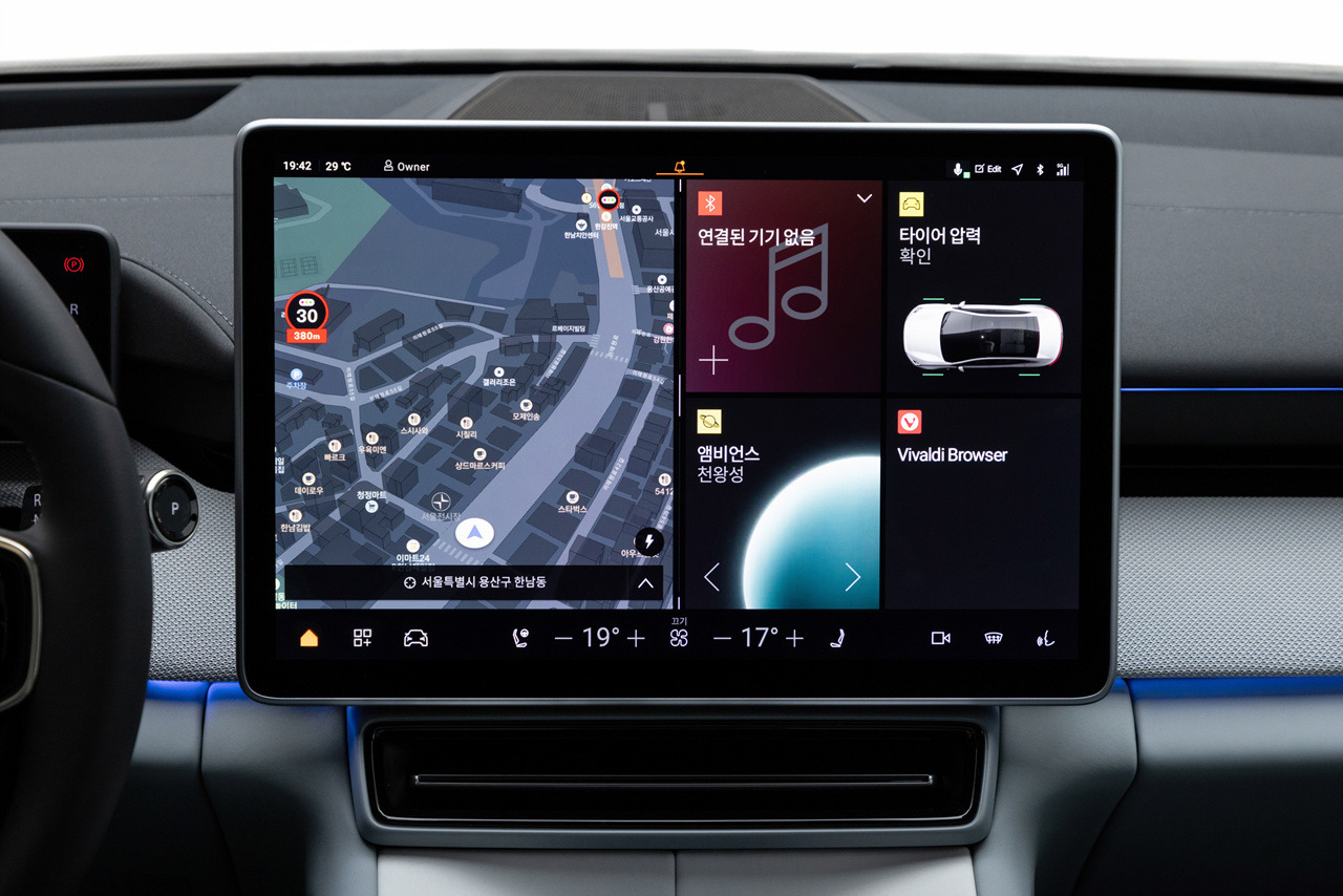 폴스타4는 구글 안드로이드 오토모티브 OS 기반의 인포테인먼트 시스템을 탑재하고 있습니다. 15.4인치 메인 디스플레이와 12.3인치 클러스터, 14.7인치 HUD는 운전자 중심 설계를 보여줍니다. 사용성 면에서도 스마트폰에 익숙한 한국 소비자들에게 최적화된 환경을 제공하고 있으며, OTA 업데이트를 통한 지속적인 기능 개선도 가능한 점이 장점입니다. 특히 구글 어시스턴트, 구글 맵이 기본 탑재되어 있어 내비게이션 기능도 매우 편리합니다.