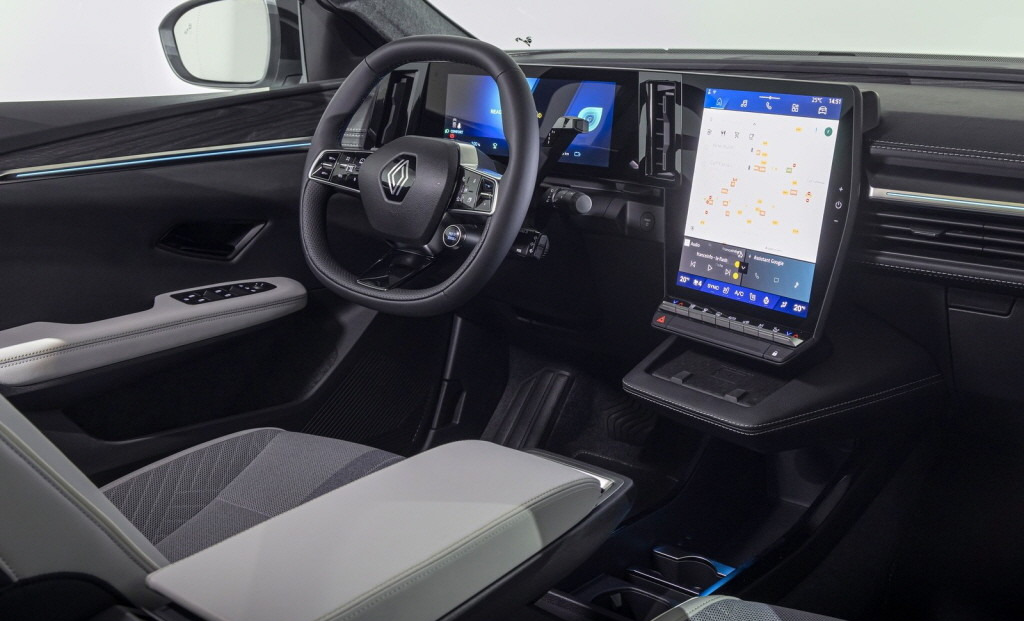 외관은 르노의 새로운 디자인 언어인 ‘누벨 R 로고’와 시그니처 LED 헤드램프가 조화를 이루며, 전면 그릴은 다이아몬드 패턴으로 전기차 특유의 세련된 느낌을 강조합니다. 후면부 테일램프는 화살표 형태의 독특한 디자인으로 차체를 넓어 보이게 만듭니다.