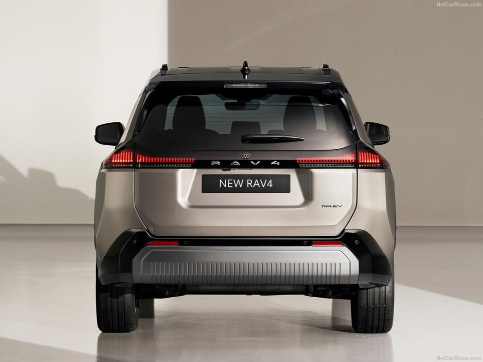 후면은 좌우 연결형 테일램프와 루프 스포일러, 클래딩 디자인을 통해 강인한 느낌을 강조합니다. 트렁크 중앙에는 'RAV4' 레터링이 큼직하게 들어가 존재감을 더했으며, 새로운 스키드 플레이트 디자인도 시선을 끕니다.
